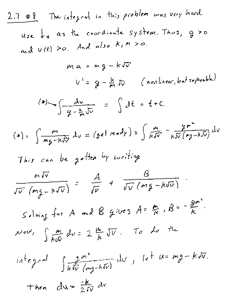 Solutions to some homework problems: